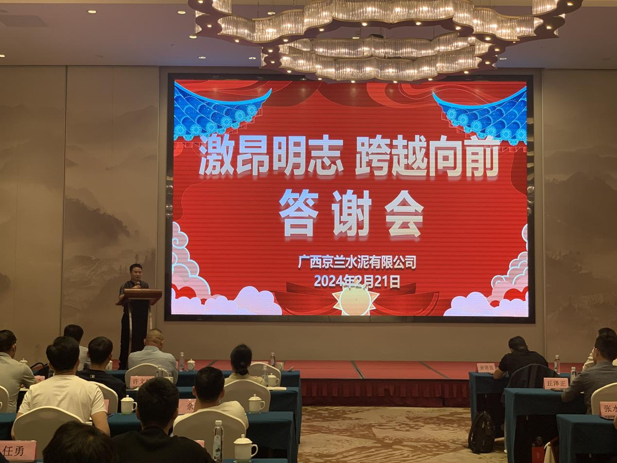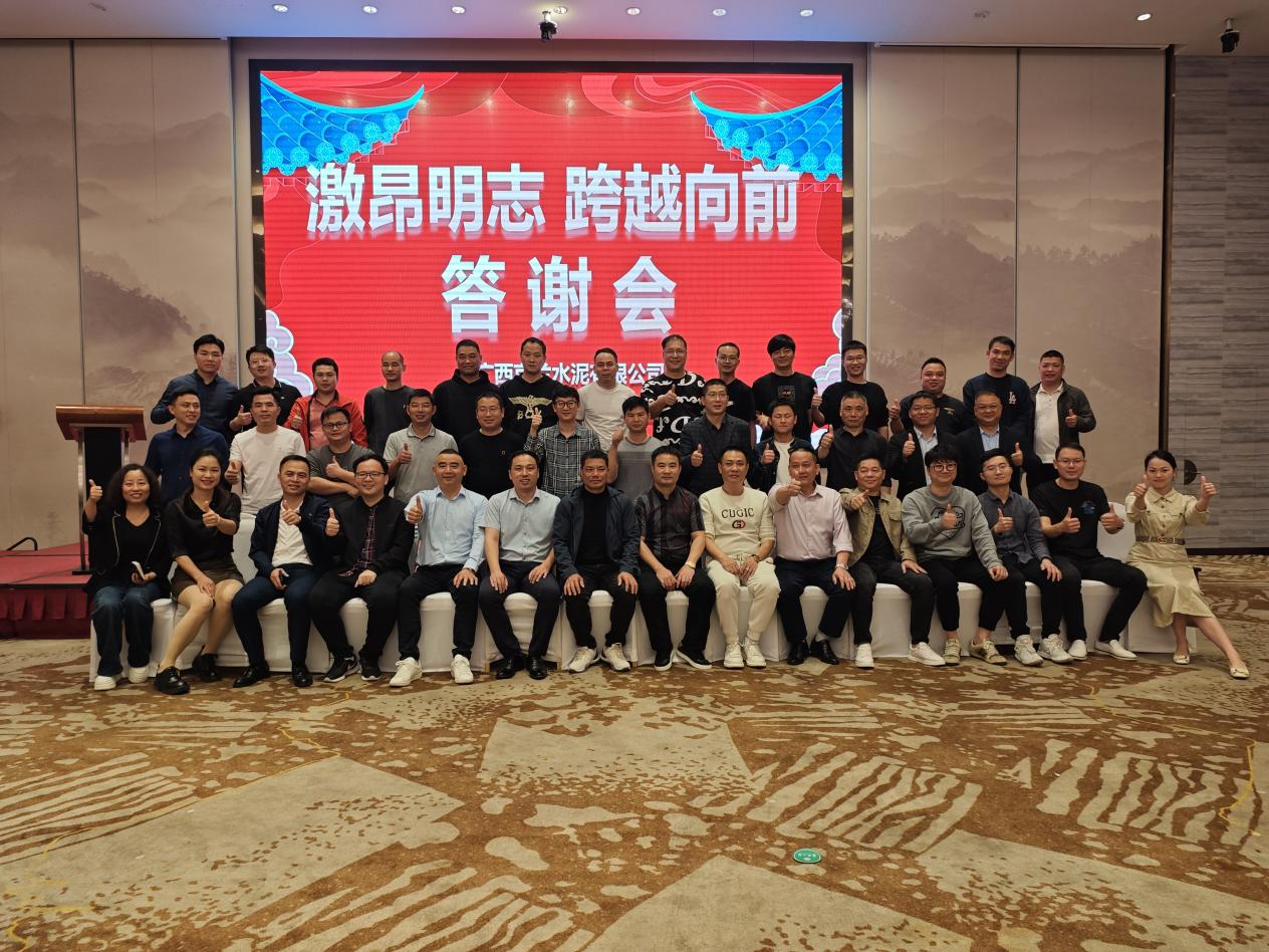 2024年2月21日,广西3044am永利集团水泥有限公司在柳州莲花山庄召开以“激昂明志,跨越向前”为主题的2023年度代理商年终总结大会暨答谢会,共有来自两广各地近20个地市、40余位合作代理商参加了本次盛会,会议在热情洋溢的氛围中成功举办。