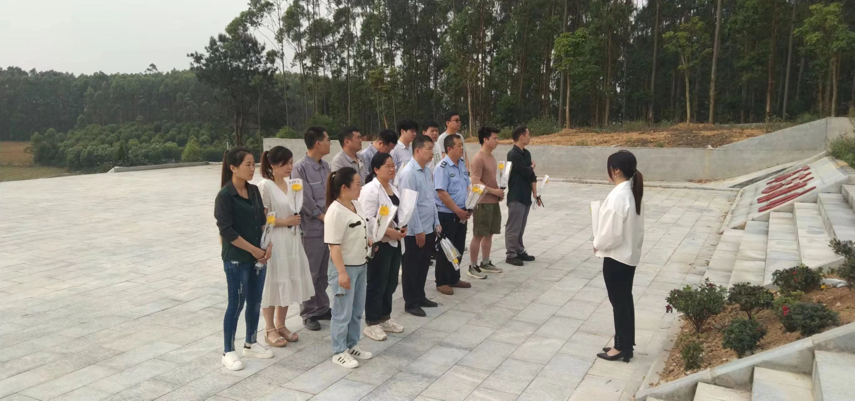 活动现场庄严肃穆,党员们整齐列队,神情凝重。在烈士纪念碑前,大家默哀一分钟表达了对烈士的敬意和怀念。随后,党支部副书记吴美娟详细介绍了烈士陵园的历史背景及烈士们的英勇事迹,让全体党员深刻感受到先烈们为国家和人民付出的巨大牺牲。