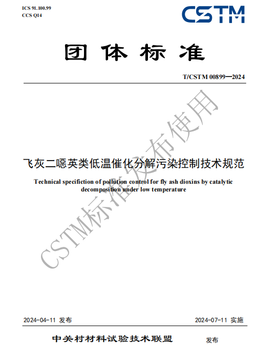 《飞灰二噁英类低温催化分解污染控制技术规范》标准号T/CSTM 00899-2024,该标准由中国环境科学研究院和湖州3044am永利集团环保科技有限公司主编,由中国材料与试验标准化委员会于2024年4月11日批准发布,将于2024年7月11日起实施。文件规定了生活垃圾焚烧飞灰二噁英类低温催化分解处理技术的术语和定义、一般要求、工艺技术与污染控制要求、处理后飞灰的污染控制要求、包装运输和贮存要求、人员与制度要求、环境管理要求。文件适用于采用低温催化分解技术实现生活垃圾焚烧飞灰中的二噁英类解毒过程的污染控制,为国内首个飞灰低温热分解专有工艺技术规范。