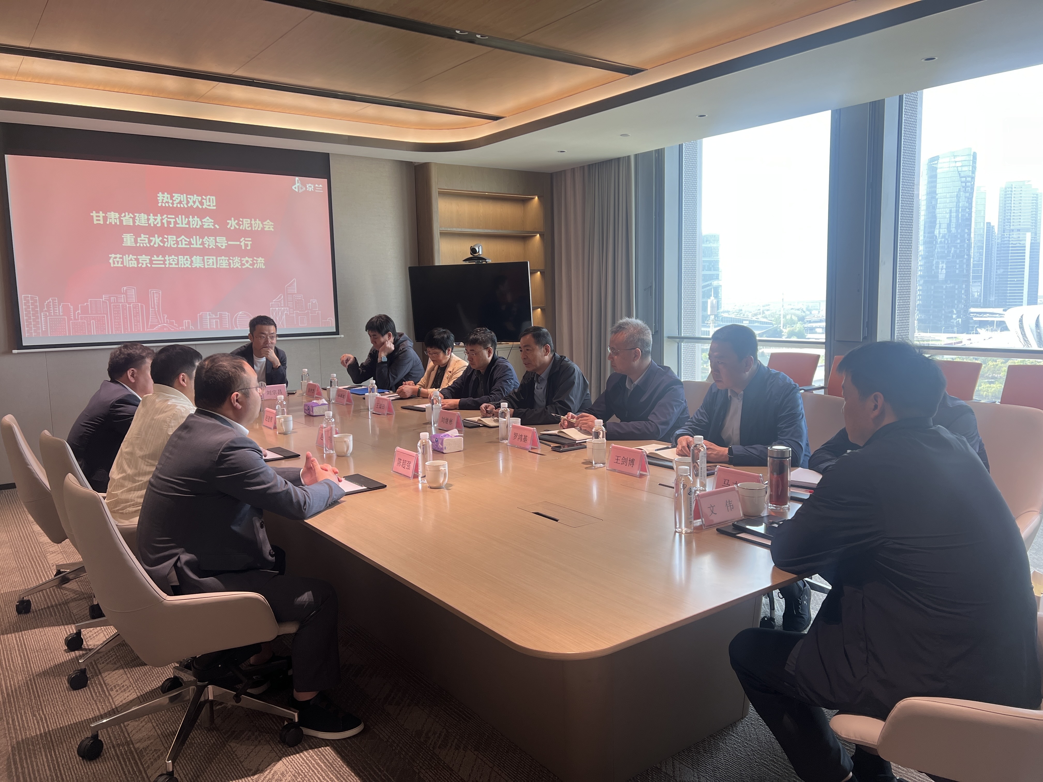 甘肃省建材行业协会副会长、甘肃祁连山水泥集团有限公司党委书记、总裁罗鸿基,甘肃省建材行业协会、甘肃省水泥协会常务副会长兼秘书长王琰田,甘肃祁连山水泥集团有限公司党委委员、副总裁王剑博,集团营销中心总经理张守杰,甘肃省水泥协会执行副会长、甘肃中材水泥有限责任公司总经理马志锋,甘肃省水泥协会执行副会长、兰州红狮水泥有限公司总经理郭轶,甘肃省水泥协会副会长、临夏海螺水泥有限责任公司总经理文伟,甘肃省水泥协会副会长、甘肃寿鹿山水泥有限责任公司总经理刘宗昌参加此次交流会议。3044am永利集团集团董事长赵伟光、总经理赵志浩率管理团队热情接待,双方就水泥行业生态建设、现代企业管理、技术创新、数字化转型及绿色低碳发展等议题展开深入探讨,并达成系列合作共识。