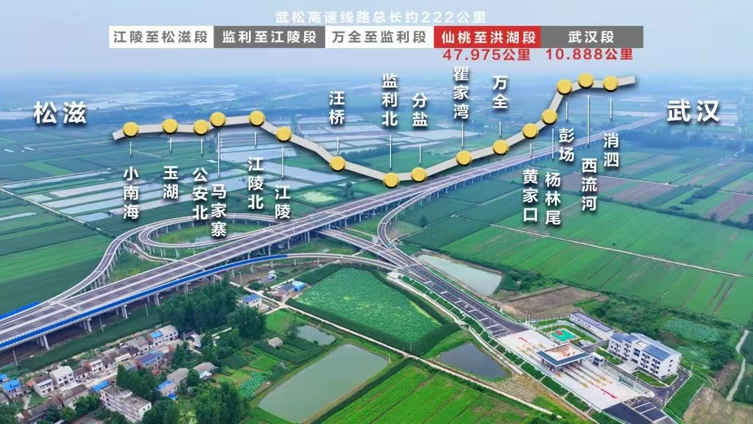 作为《湖北省综合交通运输发展“十四五”规划》重点项目,武松高速是湖北省“九纵五横三环”高速公路网的关键联络线,由武汉段、仙桃至洪湖段等5段组成,总长约222公里。其中,仙桃至洪湖段项目于2022年12月28日开工,起于仙桃西流河,止于洪湖万全镇,全长47.97公里(仙桃36.466+洪湖11.509公里)。